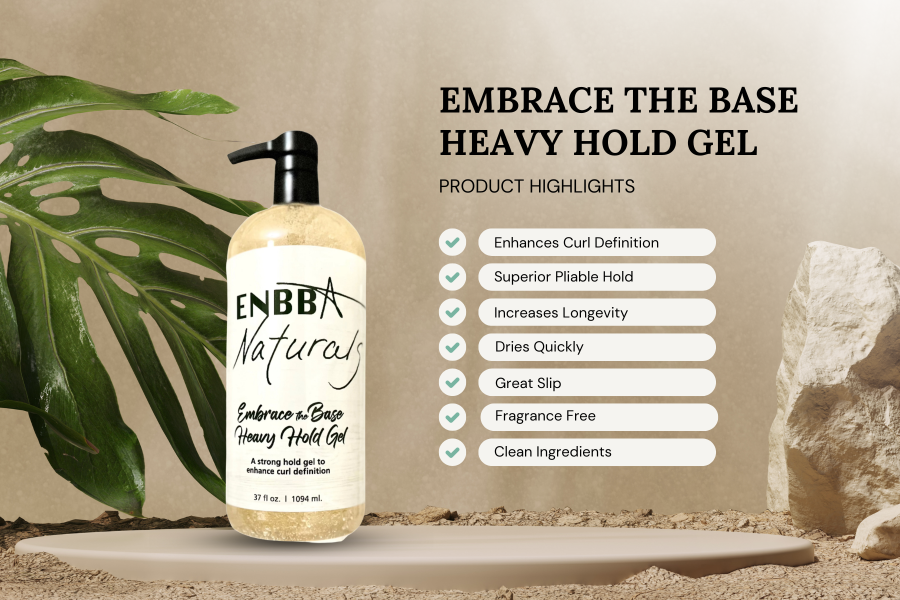 The thickest and strongest holding of all gels in the ENBBA Naturals line of styling gels. As a base, it is packed with moisture rich ingredients for nourishment and conditioning. Though the grip on the hair is firm, it spreads smoothly for easy distribution. As with all ENBBA products in the Embrace collection, your hair will feel soft to the touch.